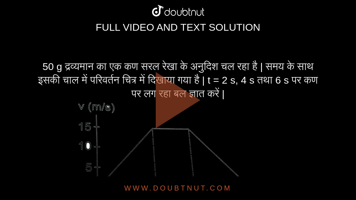 A Paticle Of Mass 50 G Moves On A Straight Line The Vatiation Of Speed With Time Is Shown In Figure Find The Force Acting On The Particle At T 2 4 And 6 Secons