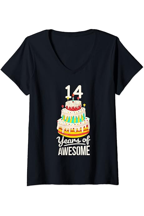 Amazon Com 14 Years Of Awesome Funny 14th Birthday Cake For Teenager Premium T Shirt Clothing Shoes Jewelry